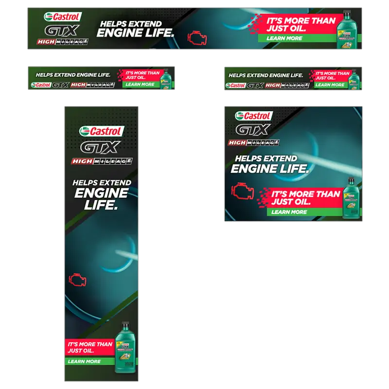 These were built exclusively in Photoshop. Attention to detail ensured consistency of the look and feel across all banner ad sizes, while adhering to Castrol's branding guidelines.