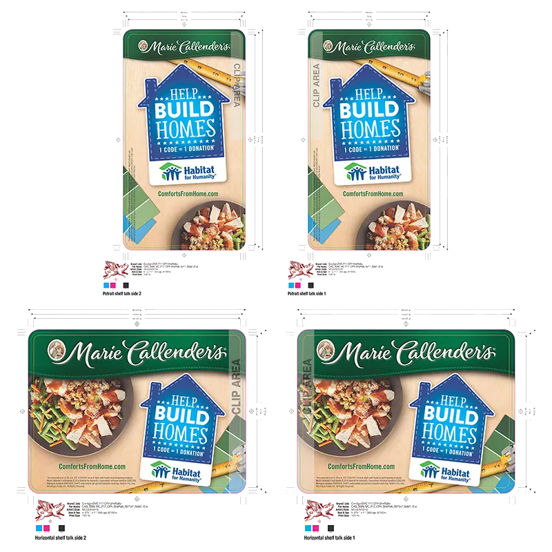 Shown here are two Marie Callender's shelf talkers and an Orville Redenbacher's shipper header and hutch.
