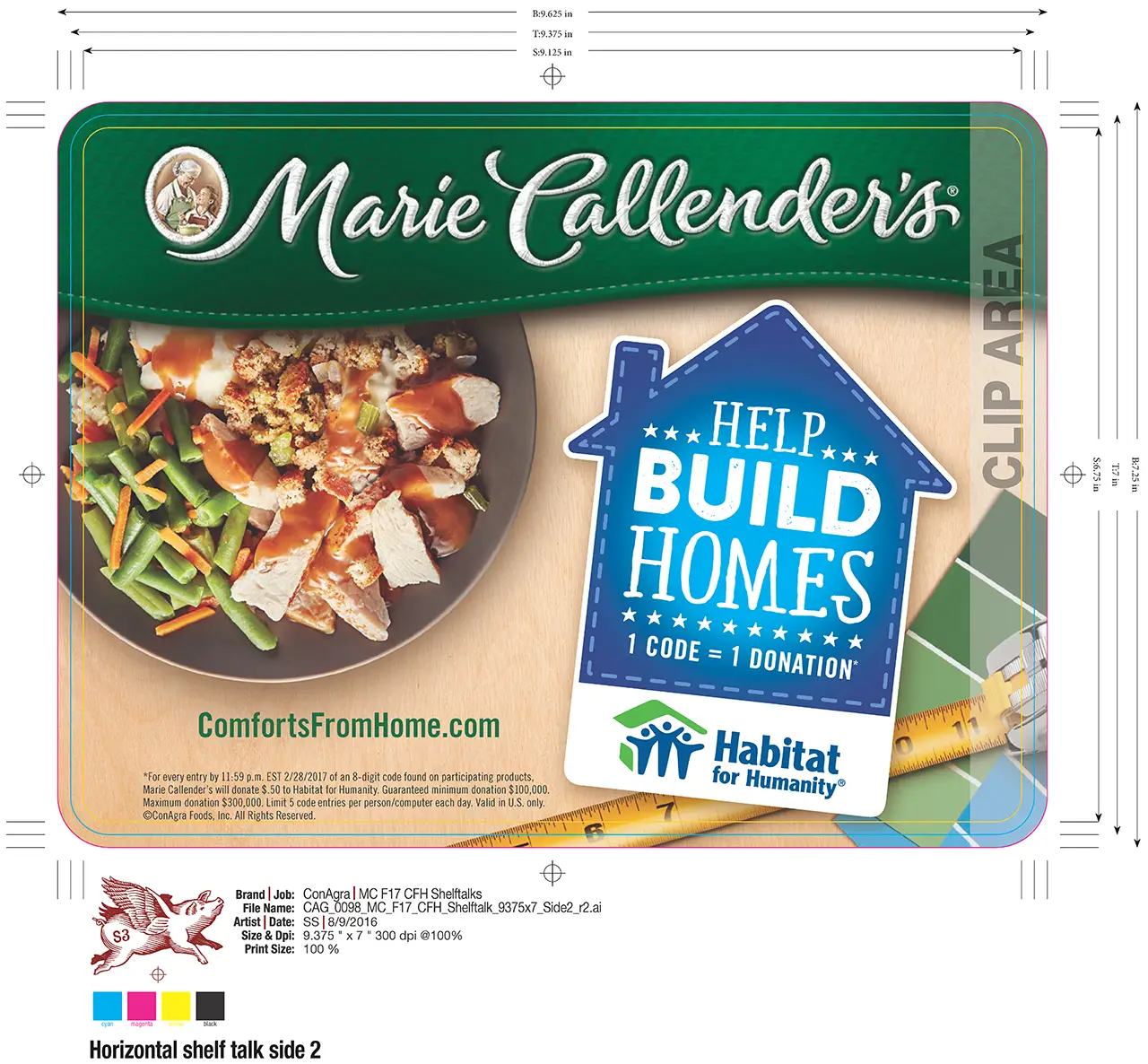 Shown here are two shelf talkers (fronts and backs) for Marie Callender's.